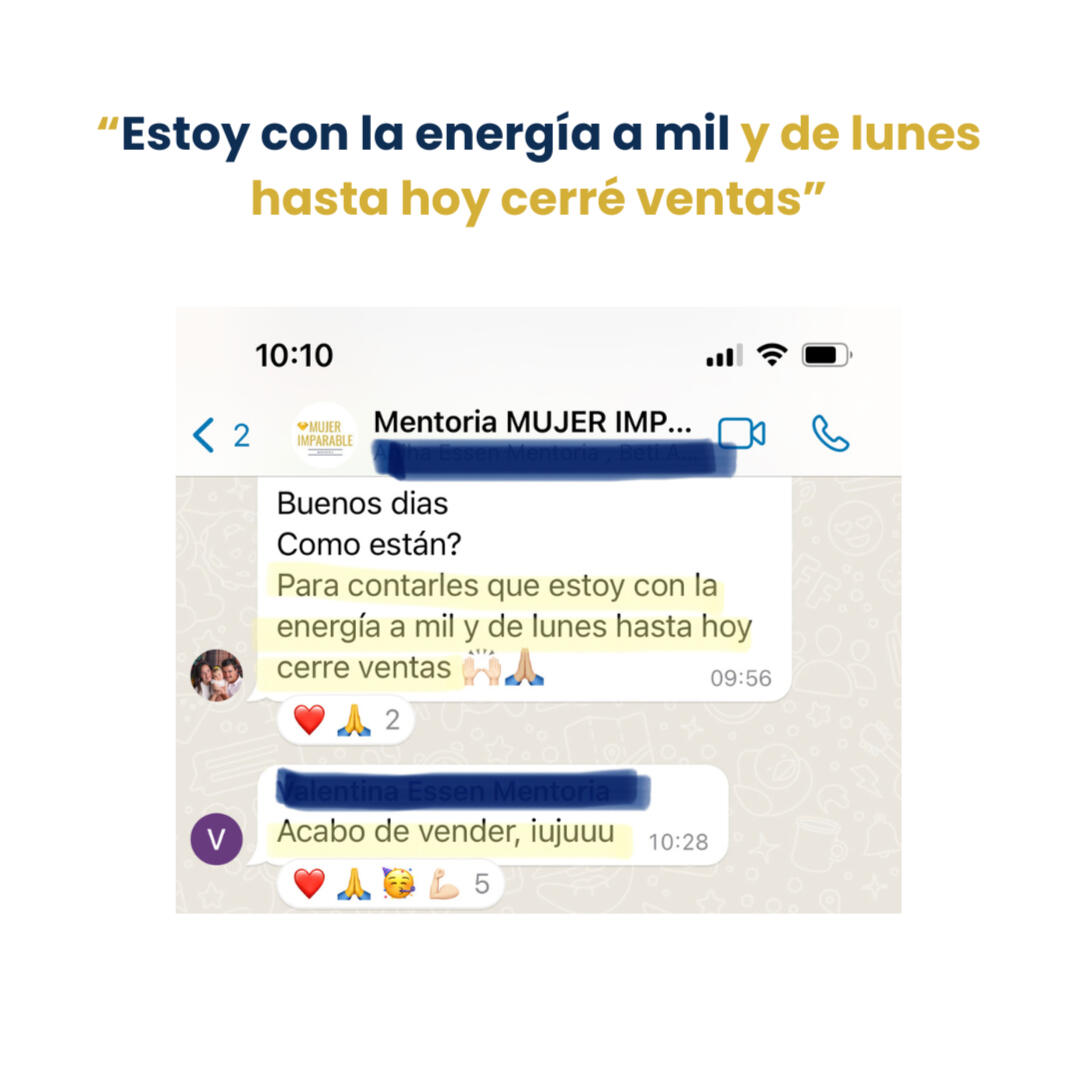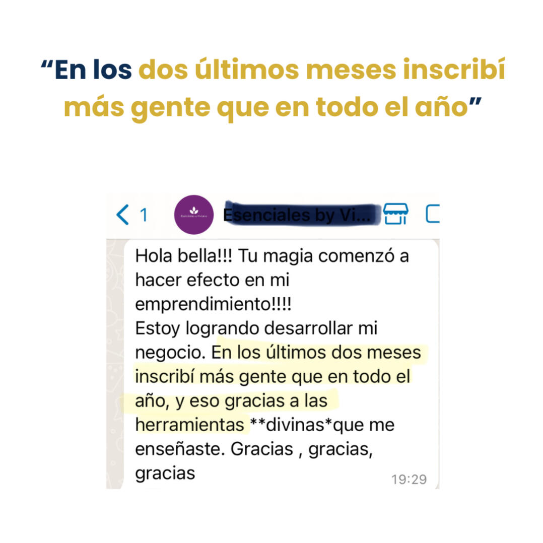 Pase de facturar en un año lo que ahora facturo en un mes. Facturar +10K/15K es posible en mi negocio, porque: convertirme en la Queen que sostiene esos resultados es mi prioridad. Las estrategias SOLO funcionan cuando son sostenidas por una dueña de negocio parada en la certeza, determinación y liderazgo.Una cosa es aprender e implementar todas las estrategias para escalar tu negocio pero otra cosa muy distinta es convertirte en la mujer que puede escalar un negocio, sostenerlo en constante crecimiento y hacer match con esas cinco cifras mensuales sin resistencias.🔥 Mientras la mayoría se enfoca en encontrar el curso nuevo para seguir acumulando estrategias sin resultados, yo tengo mi foco en lo que trae miles de dólares diarios a los negocios:Auto concepto elevado, mapa mental, posicionamiento de marca, y estrategias simples, esto es lo que atrae continuamente clientes High Ticket 🔥. Y esto es lo que aprendes en mi mundo.